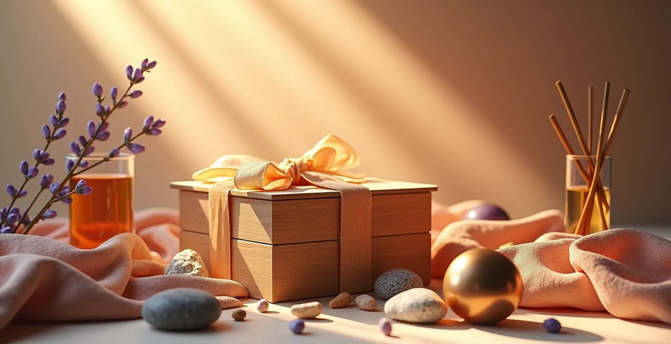 Recevoir un coffret cadeau est une promesse de plaisir. Pourtant, combien de fois cette promesse se dissout-elle en une expérience superficielle et vite oubliée ? On déballe, on goûte un chocolat, on sent un parfum, on écoute distraitement une musique d’ambiance. Le plaisir est là, mais il est fragmenté, éphémère. Face à cela, le conseil habituel se limite souvent à une liste d’ingrédients : allumer une bougie, choisir une playlist, se mettre à l’aise. Cette approche, bien qu’intentionnelle, traite les sens comme des canaux indépendants à saturer d’informations.