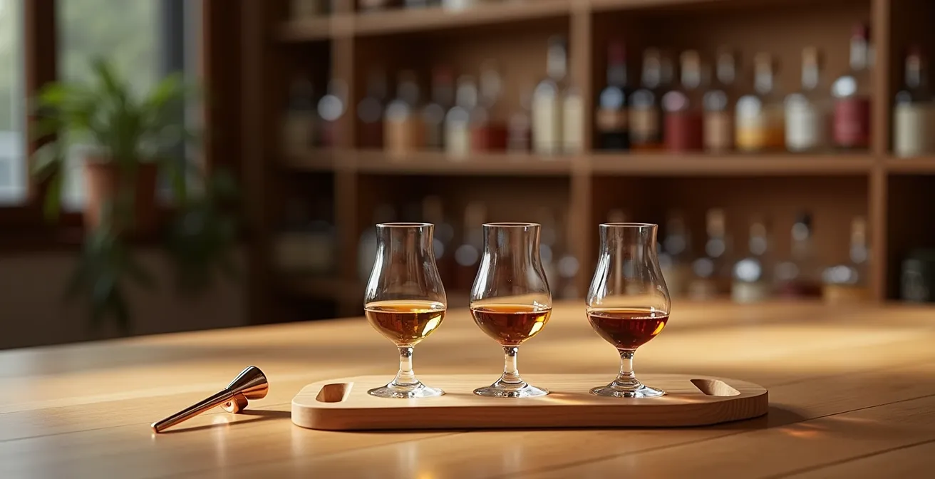Pour progresser plus vite, l’approche recommandée par de nombreux professionnels est celle de la spécialisation thématique. Comme le conseillent les cavistes experts du Domaine du Goût, il est préférable de choisir une catégorie et de l’explorer en profondeur. Un coffret de dégustation composé uniquement de whiskies, par exemple, permet de faire des comparaisons beaucoup plus fines et éducatives. En dégustant un Scotch des Highlands (fruité et miellé) à côté d’un Islay (tourbé et iodé), vous commencez à comprendre l’impact du terroir. En comparant un Bourbon (maïs, vanille) à un Rye (seigle, épices), vous saisissez l’influence de la matière première.